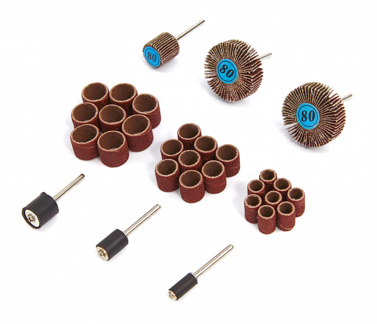 S touto sadou profesionálních brusných nástrojů můžete úspěšně dokončit jakýkoli typ broušení. Různé kotoučky mají různé rozměry a průměry, což vám umožní flexibilní práci při opracování dřeva nebo kovu. V sadě najdete také veškeré potřebné příslušenství.