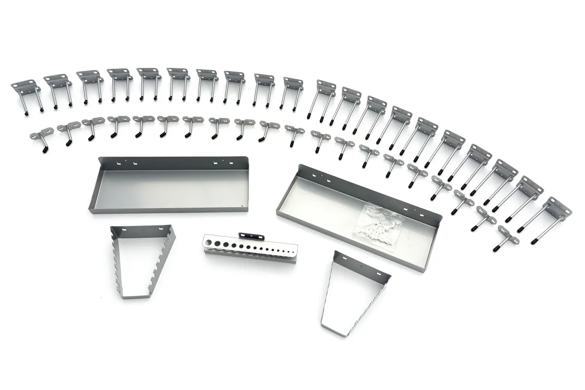 45dílná sada háčků poliček, držáků pro dírkovaný panel