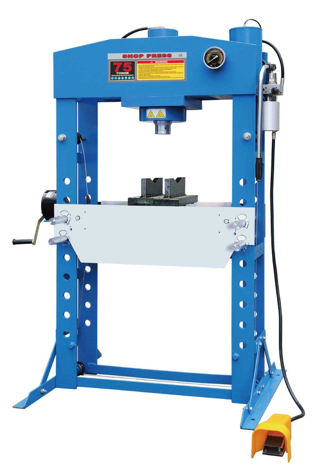 HBM 75t rámový dílenský hydraulicko-pneumatický lis, 425 kg