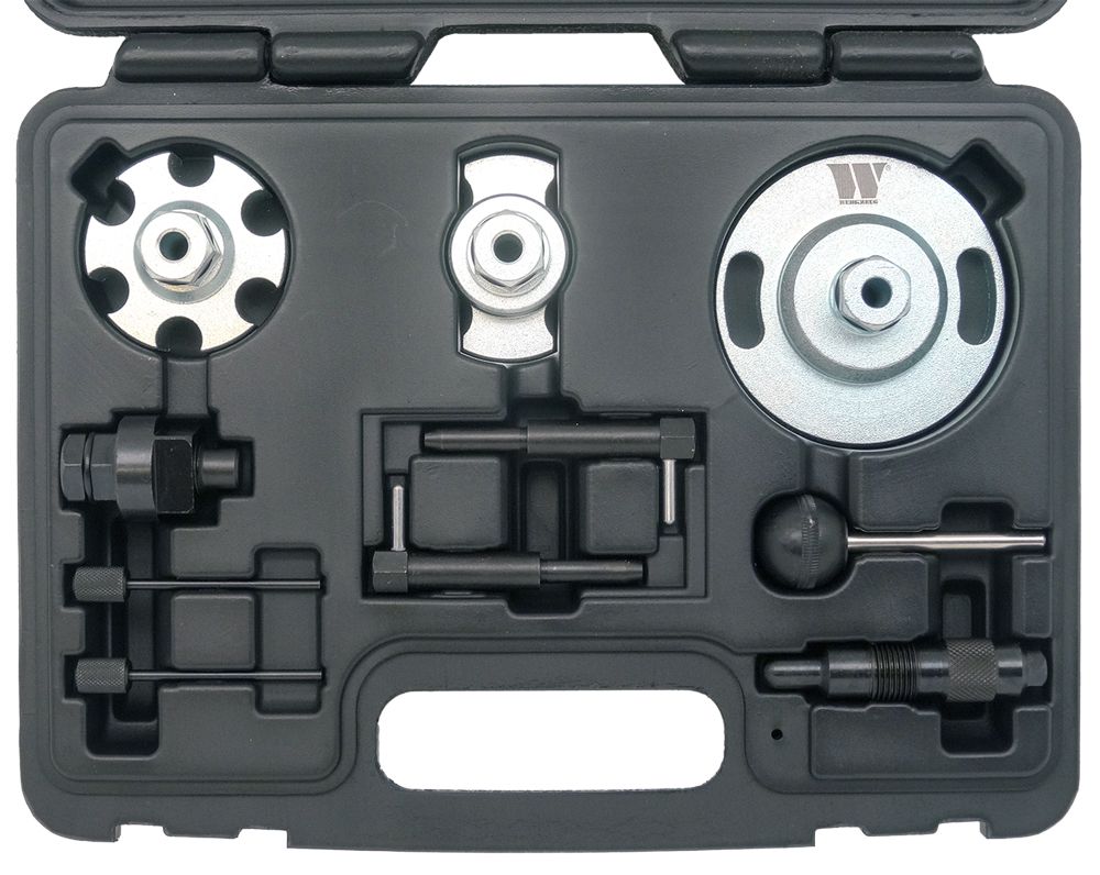 Sada přípravků je určena na nastavování / časování rozvodů dieselových motorů VAG. Sadu lze také využít při výměně rozvodových řetězů a pod.