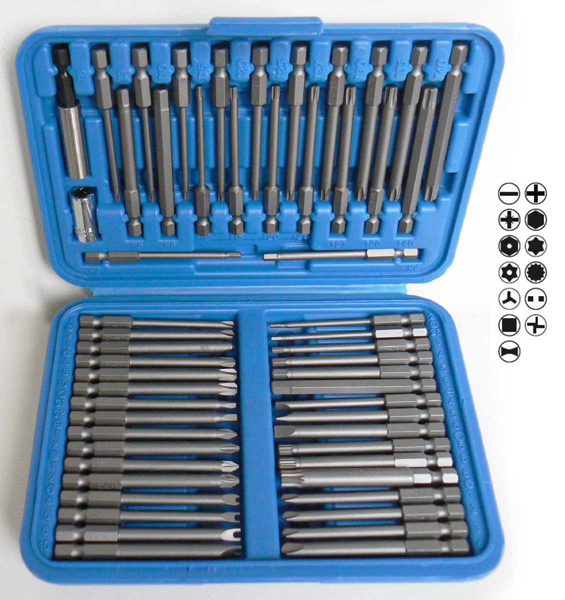 - Bity 1/4", PL-PH-PZ - Inbus - Torx - Robertson, CrV, sada 55 dílů, Condor Werkzeug
