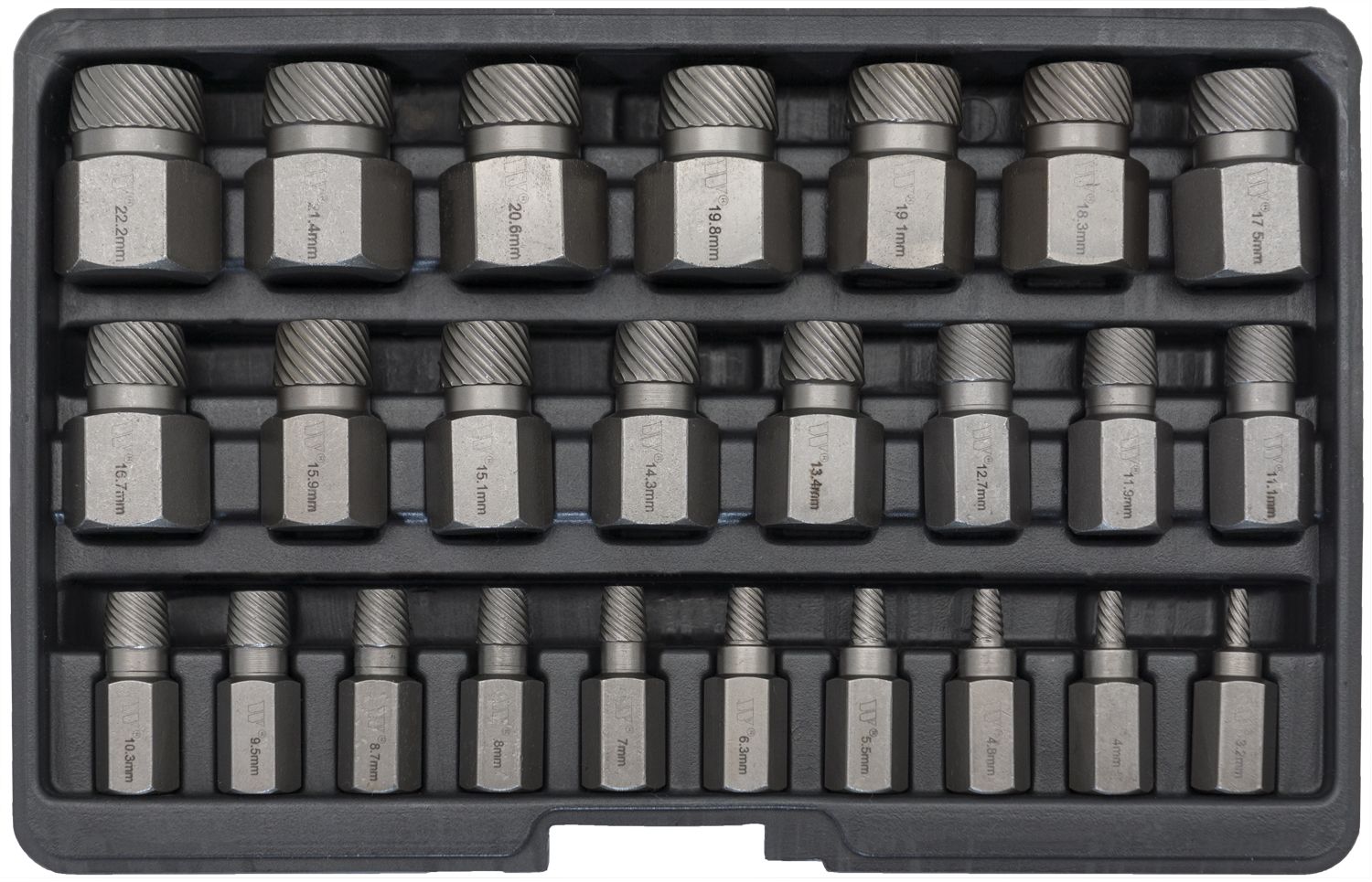 Bity na vytahování zalomených šroubů, 3.2-22.2 mm, sada 25 dílů, Welzh