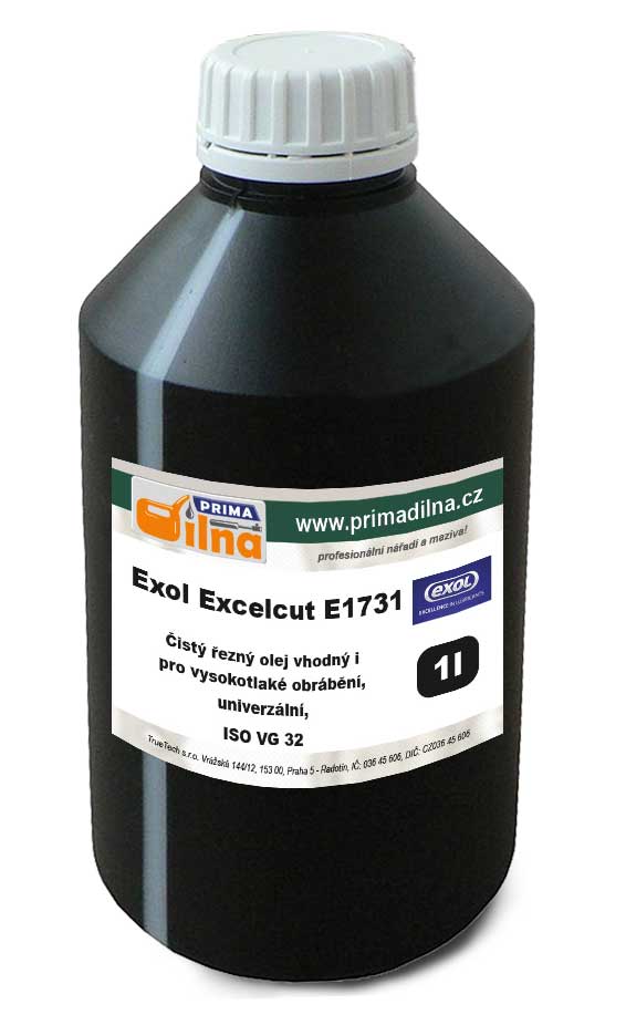 - Exol Excelcut E1731, výkonný čistý řezný olej vhodný i pro vysokotlaké obrábění, univerzální, ISO VG 32, 1l