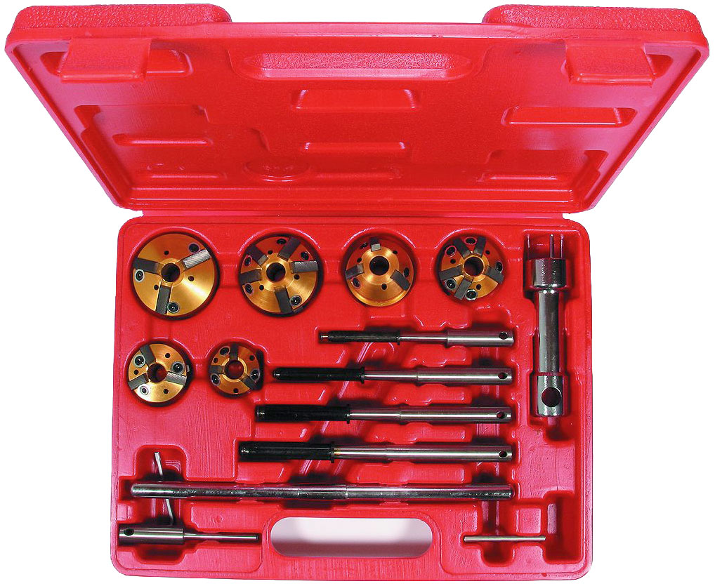 Sadajeurčenana opravuaúpravusedelventilů. Díkyřeznýmplotýnkámzeslinutých karbidůdojdekhladkémuopracovánísedla. Sadaobsahujehlavicesvyměnitelnýmiřeznýmiplotýnkamizeslinutýchkarbidů. Hlavicejsousúhlyvhodnýmiprovětšinu automobilů.