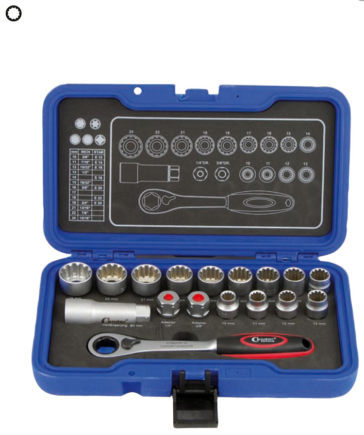 - Gola sada průchozí, VARIOPLUS, 10-24 mm, 17 dílů, Condor Werkzeug