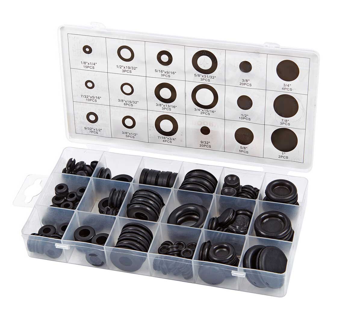 Gumové průchodky 1/8" - 1", otevřené i zavřené, 125 kusů