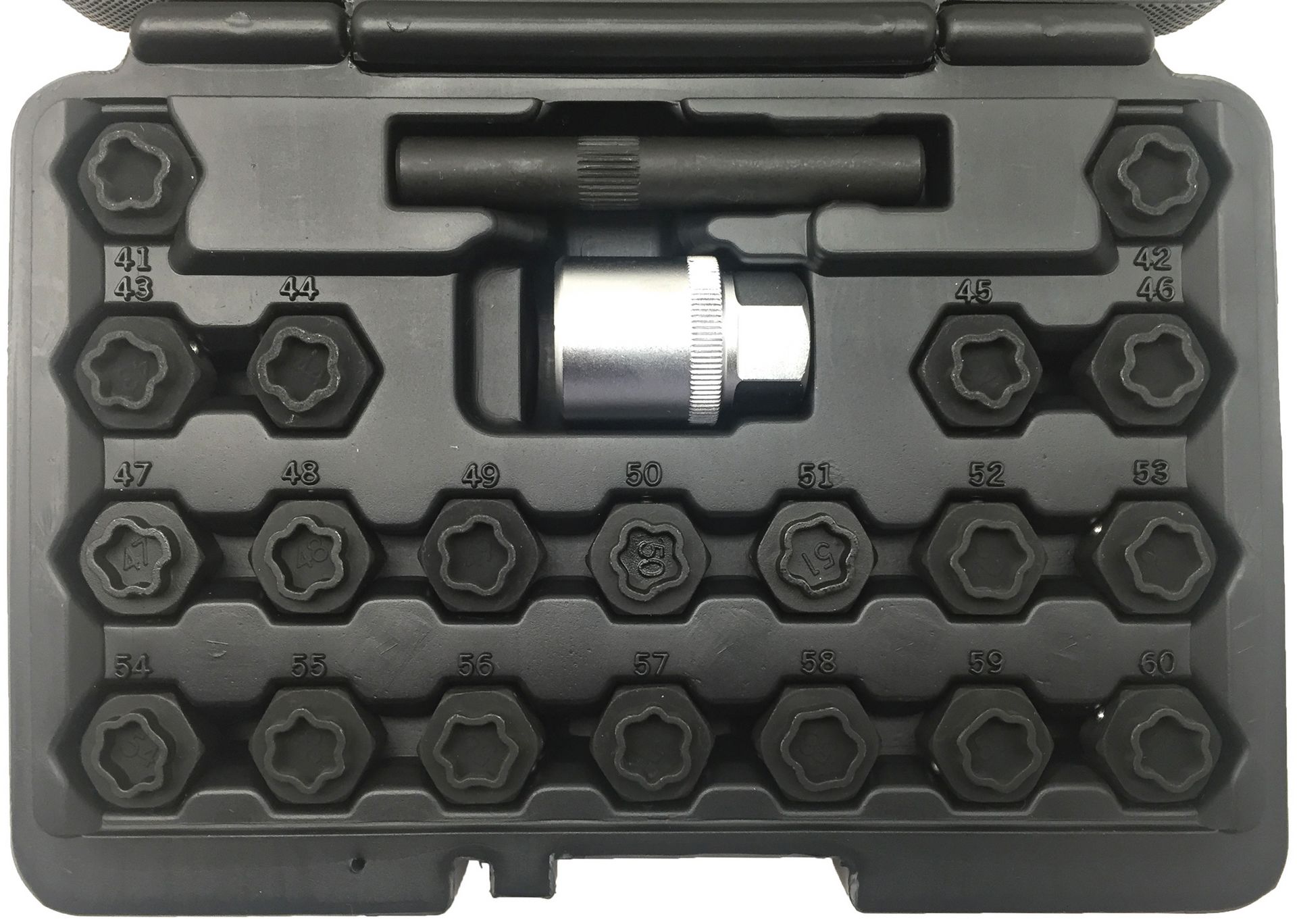 Hlavice jsou určeny pro demontáž a montáž bezpečnostních šroubů kol vozidel BMW.