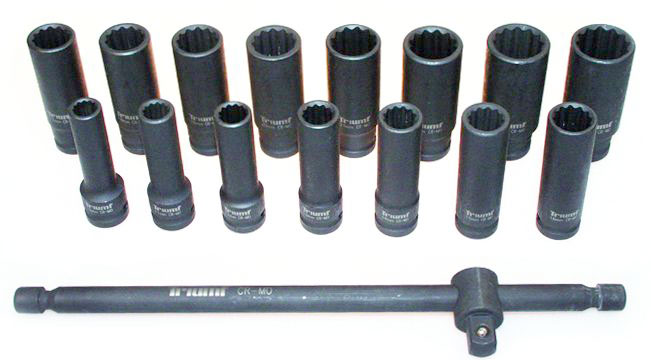 - Hlavice nástrčné 1/2", 12ti hran 10 - 24 mm, prodloužené, tvrzené, 17 ks, Triumf