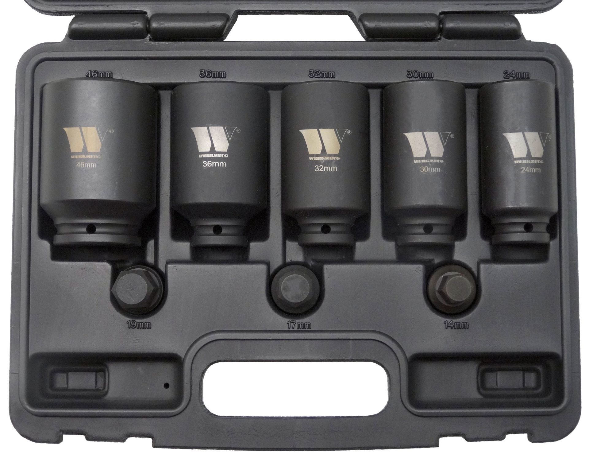 - Hlavice nástrčné 12 hran: 24 mm, 30 mm, 32 mm, 36 mm, 46 mm
