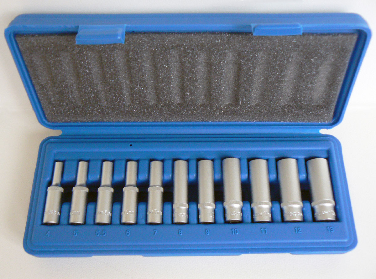 Hlavice nástrčné 1/4", 6 hran 4 - 13 mm, prodloužené, sada 11 dílů, Condor Werkzeug