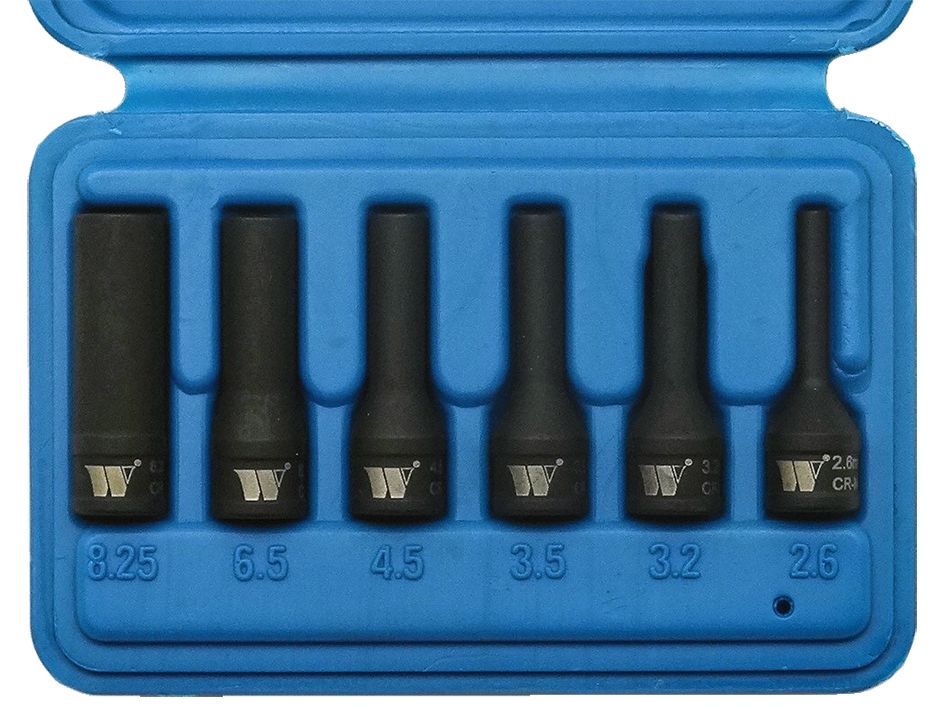 - Hlavice nástrčné 1/4", prodloužené na vyjmutí žhavicích svíček, CrMo, sada 6 dílů, Welzh