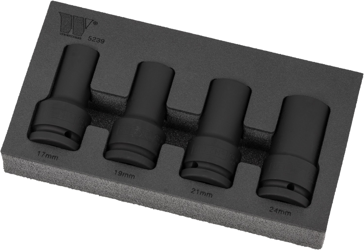 - Hlavice nástrčné 3/4", 6 hran, pro rázové utahováky, CrMo, 17-24 mm, sada 4 díly, Welzh