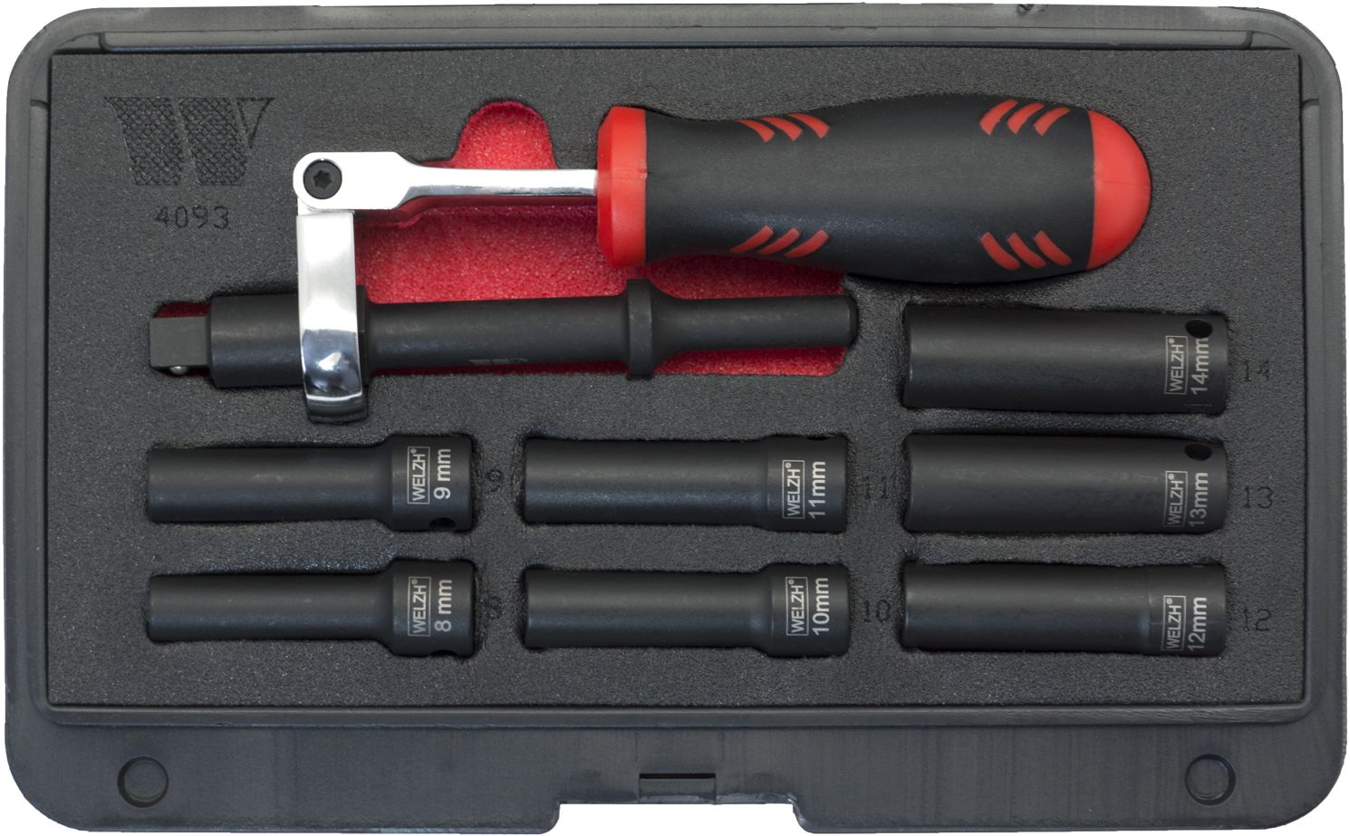 - Hlavice nástrčné pro rázové utahováky, 6 hran, 8 - 14 mm, sada 8 dílů, Welzh