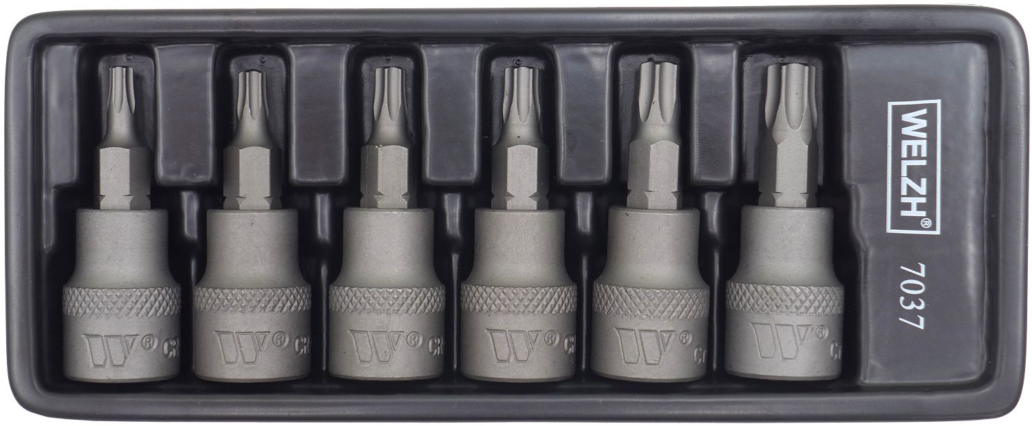 - Hlavice zástrčné 3/8", Torx T20-T45, S2, sada 6 dílů, Welzh