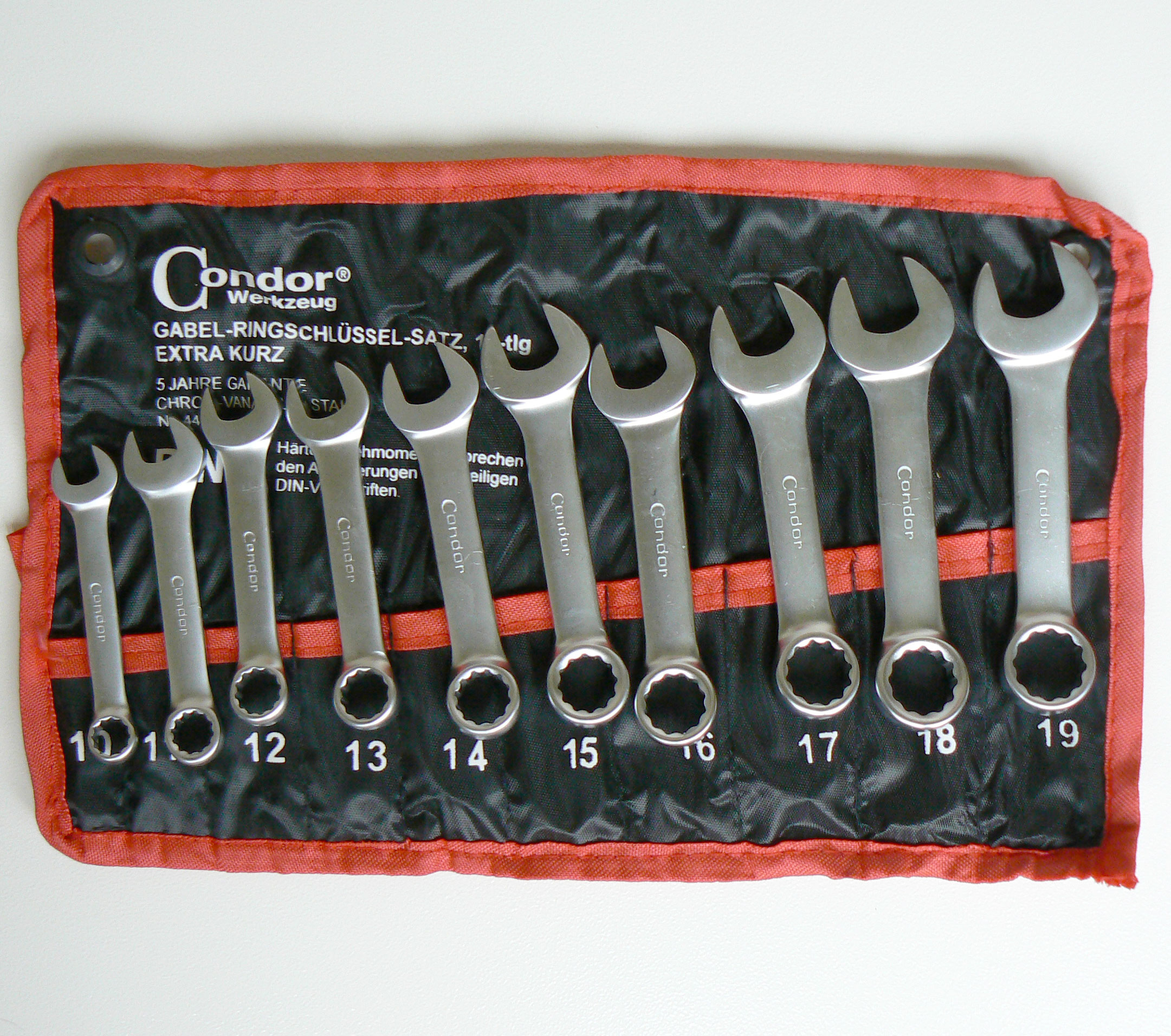 Klíče očkoploché 10-19mm, v textilním obalu, extra krátké, Condor Werkzeug