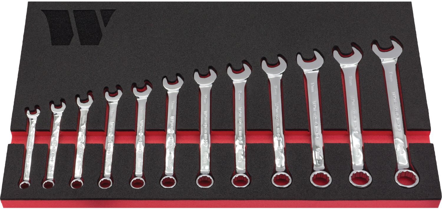 - Klíče očkoploché 8 - 19 mm, CrV, sada 12 dílů, pěnový zásobník, Welzh