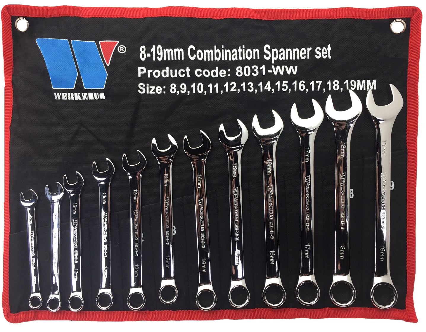 Klíče očkoploché 8 - 19 mm, CrV, sada 12 dílů, v textilním obalu, Welzh