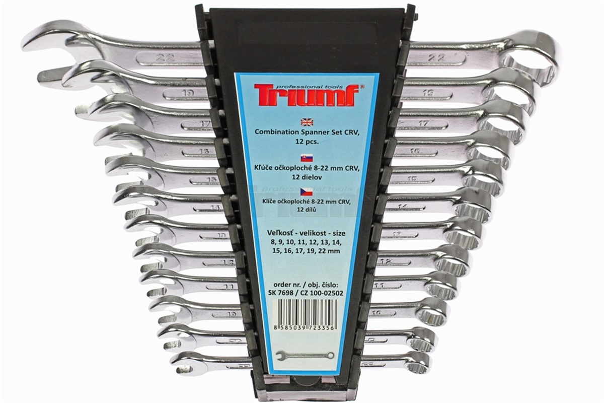 Klíče očkoploché 8 - 22 mm, sada 12ks, plastový pořadač, Triumf
