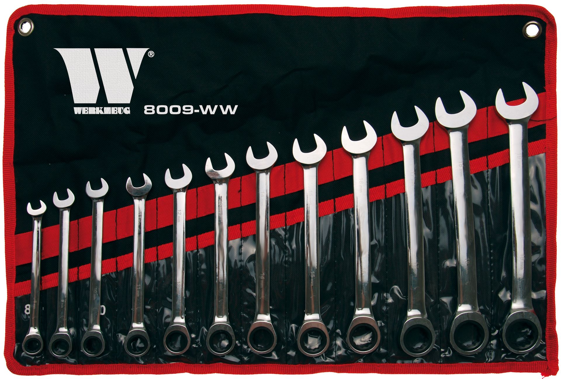 - Klíče očkoploché ráčnové 8 - 19 mm, CrV, sada 12 dílů, Welzh