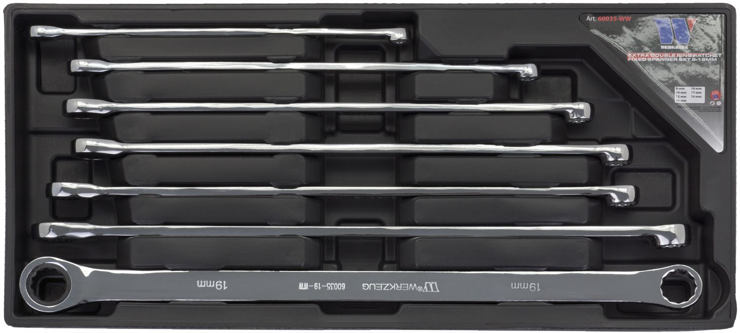 - Klíče očkové ráčnové 8 - 19 mm, extra dlouhé, sada 7 dílů, Welzh