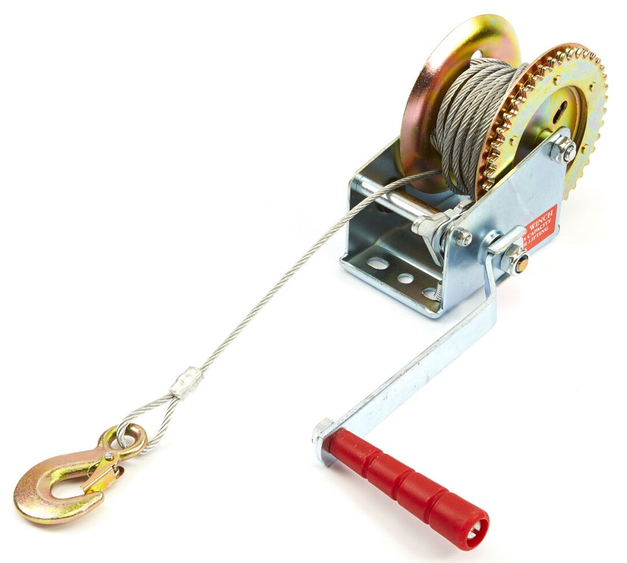 Univerzální mechanický ruční naviják má kapacitu 500 kg. Užitečné pro tažné lodě a jiná lehká vozidla. Ruční naviják je vhodný pro horizontální použití, délka ocelového lana je 10 metrů. Ruční naviják s montážním hákem je dodáván bez montážního materiálu.