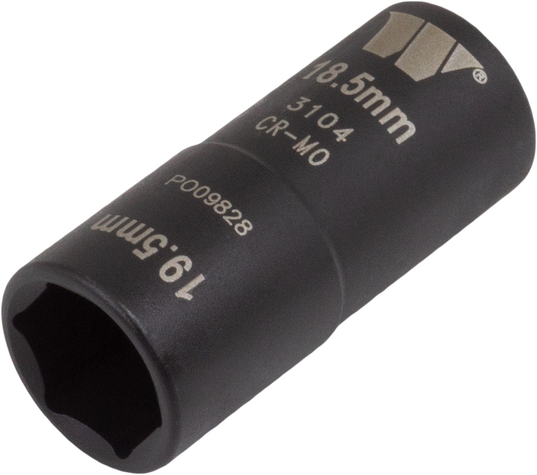 - Kombinovaná nástrčná hlavice 1/2", 6 hran, 18.5 mm a 19.5 mm na poškozené matice a šrouby, pro rázové utahováky, CrMo, Welzh