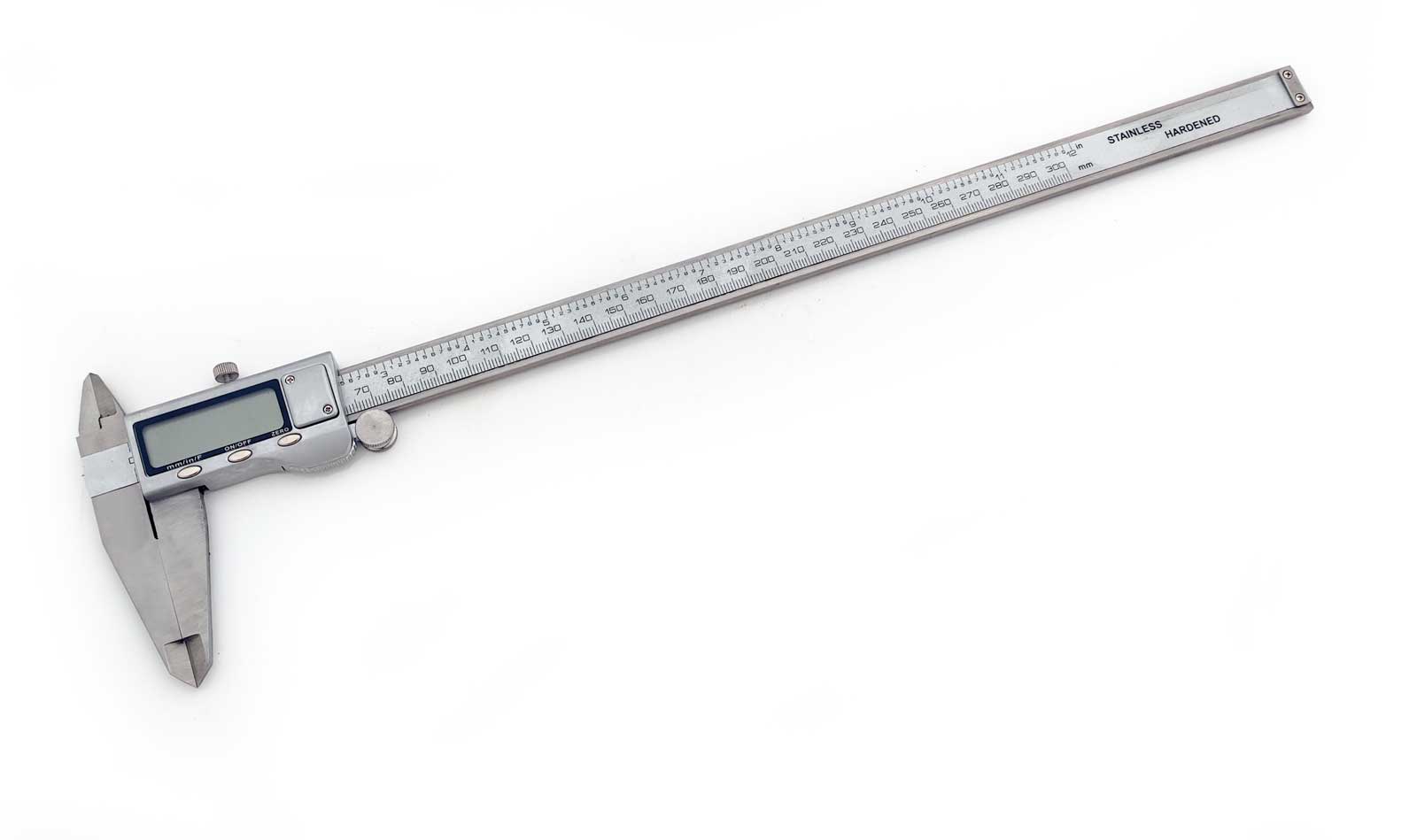 Měřítko posuvné digitální 300 mm, mm/inch, posuvné kolečko pro nastavení palcem, kovové tělo, zobrazení i pro palcové zlomky