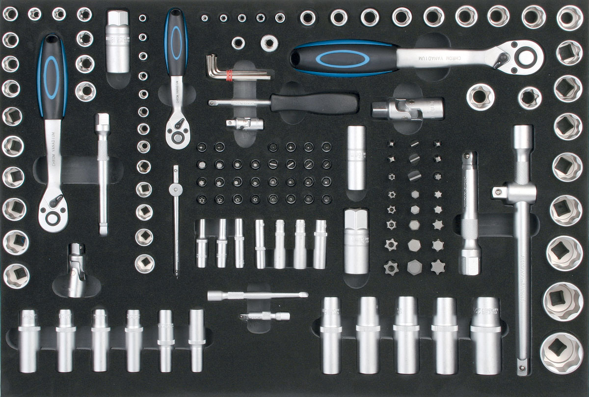 - 150 dílů - 1/4“, 3/8“, 1/2“