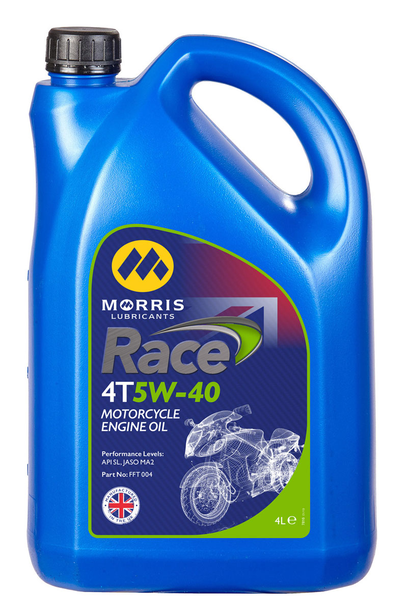 Morris Race 4T 5W-40 je pokročilý plně syntetický 4-taktní motorový olej pro všechny výkonné sportovní motocykly, superbiky a tovární závodní týmy.Mazivo bylo vyvinuto přímo z technologie motocyklových závodů, kde se prokázalo, že vysoce převyšuje běžné oleje. Tento lubrikant má extrémně vysoký viskózní index a poskytuje výjimečný výkon ve čtyřtaktních motocyklových motorech.