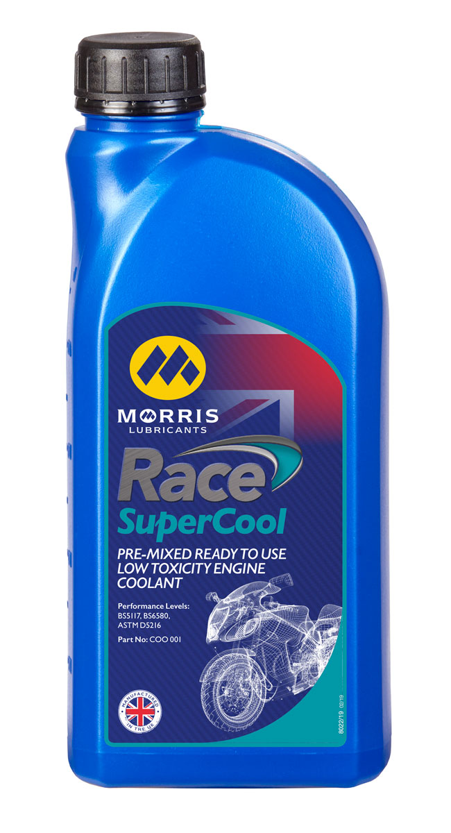 Morris Race Super Cool je vysoce účinný mix nemrznoucí směsi monopropylenglykolu, určený pro použití ve vysoce výkonných motocyklech a závodních motorech, a to jak na silnici, tak i mimo ni při nejnáročnějších závodních podmínkách.