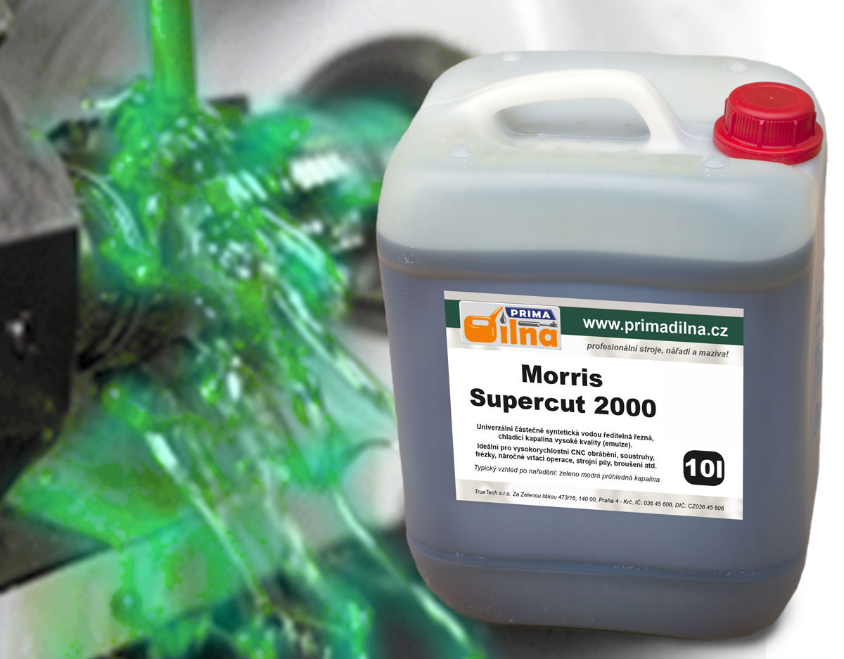 - Morris Supercut 2000 - univerzální vodou ředitelná, částečně syntetická řezná, chladící kapalina (emulze), 10l