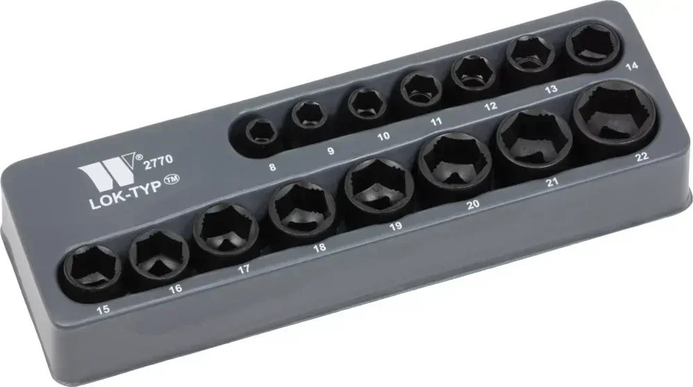 Nástrčné hlavice 3/8", Lok-TYP, 8-22 mm, 6 hran, sada 15 dílů, Welzh