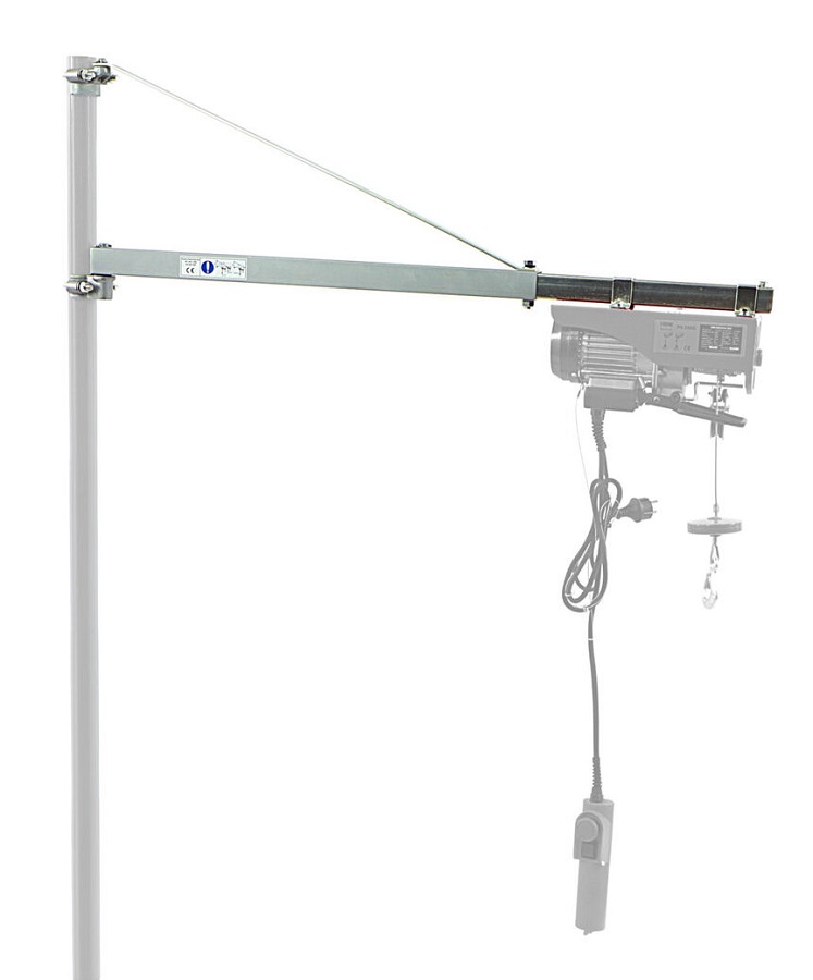 Toto otočné rameno je vhodné pro připevnění kladkostrojů. S pomocí tohoto otočného ramene se přemístění zvedáku stává velmi snadnou a rychlou prací. Otočné rameno musí být namontováno na řádně zajištěnou ocelovou tyč o průměru 48 mm, než bude možné zvedák posunout. Otočné rameno pro elektrické kladkostroje je velmi výkonné. Otočné rameno zvládne nosnost až 600 kg.