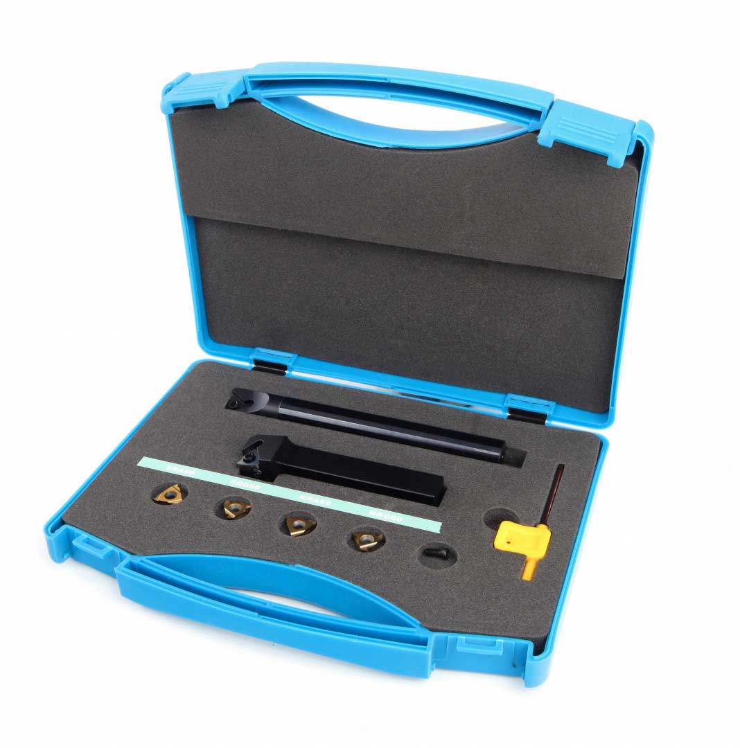 - Profesionální soustružnická sada pro řezání vnějších a vnitřních závitů s VBD plátky, 12 mm, 9 dílů