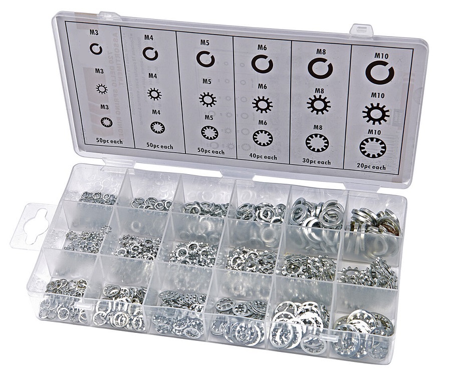 - Pružinové a vějířové podložky, M3-M10, sada 720 kusů