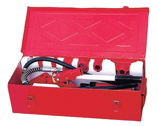 Rozpínák hydraulický - 4 tunové provedení - sada, Triumf provedení 4 t v plechovém kufru hydraulická pumpa 4 t s hadicí páka ovládací k hydraulické pumpě hydraulická pístnice, prodluž. tyč 80 mm 140 mm, 210 mm, 430 mm, spojka gumová hlava, rozvírací klín 0.5 t opěrná patka pístnice opěrná deska obd... celý popis