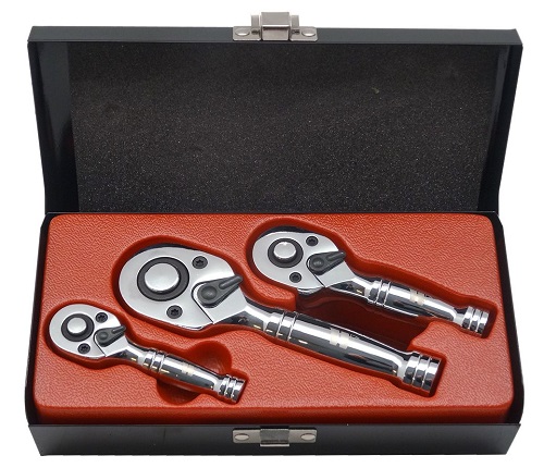 Sada krátkých odolných ráčen 1/2", 3/8", 1/4", 72 zubů, 3 kusy, Welzh