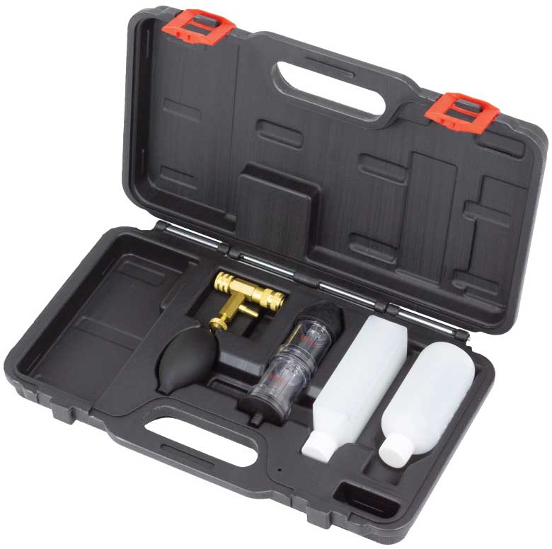 - Tato sada umožňuje diagnostikovat přítomnost CO2 v chladicím systému v případě prasklé hlavy válců a nebo porušeného těsnění bez odstranění jakýchkoli částí motoru.
