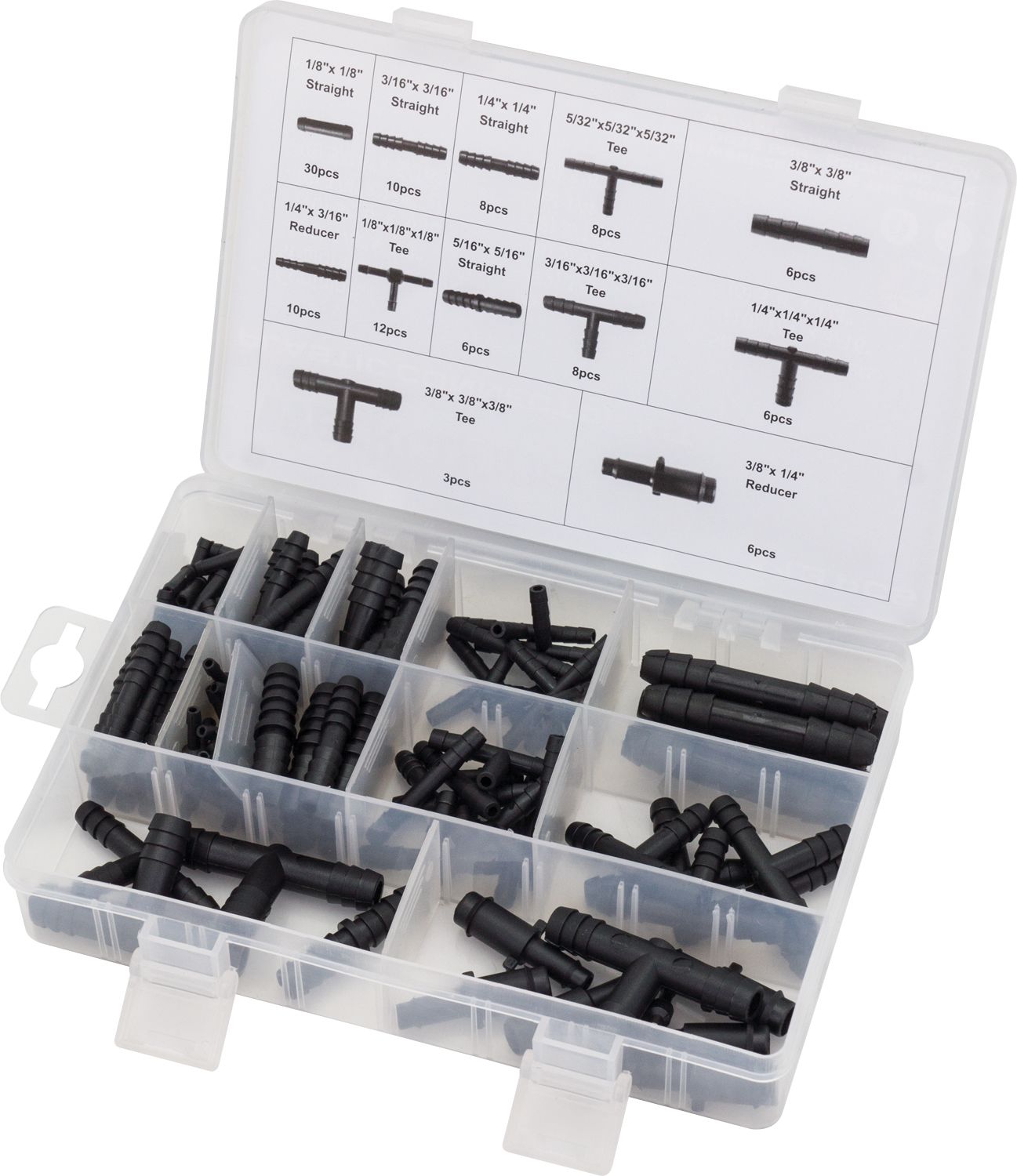 6 ks - 3/8” x 3/8” - Přímé redukce: 10 ks - 1/4” x 3/16”