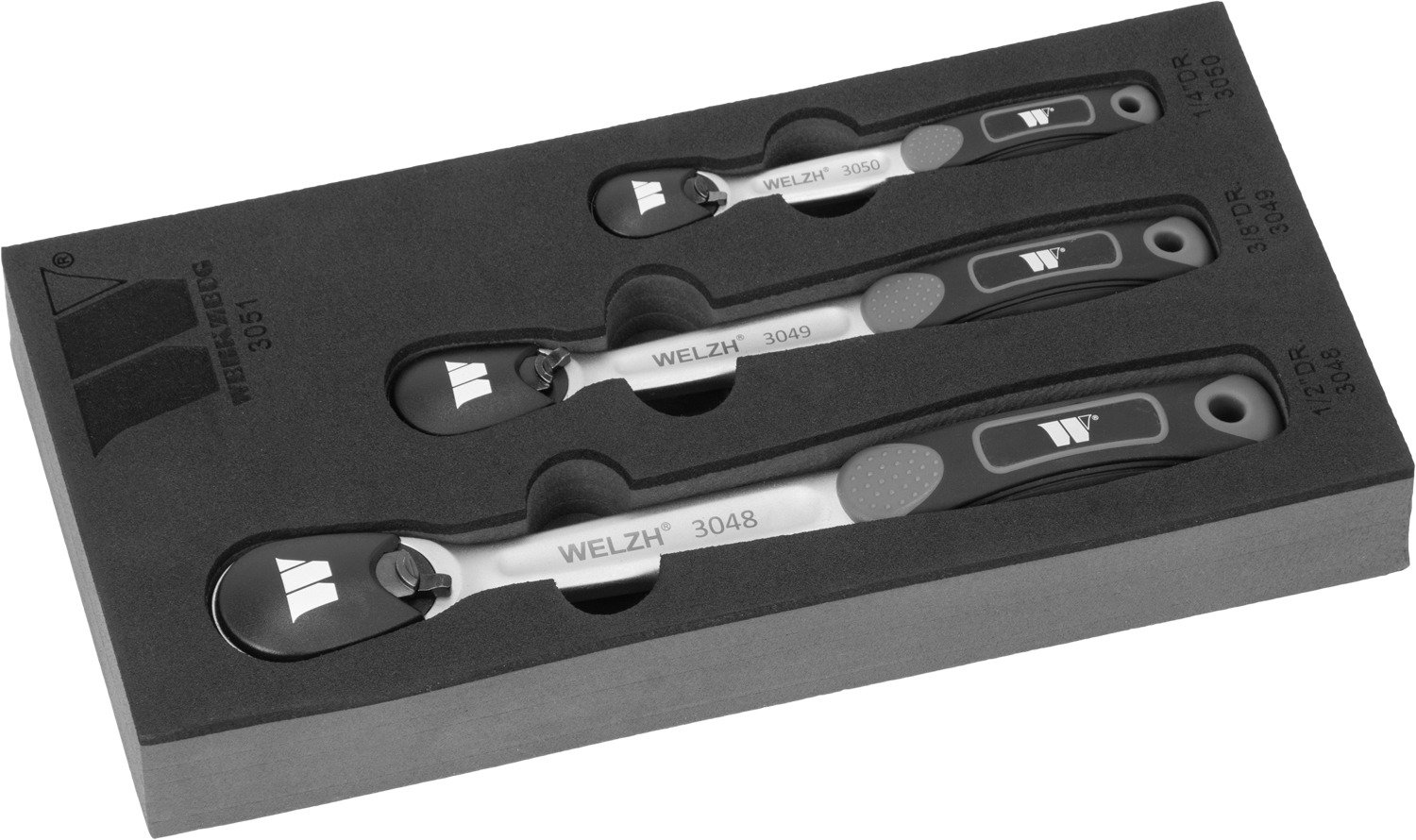 Sada ráčen 1/4", 3/8", 1/2", s přepínací páčkou, 80 zubů, Welzh