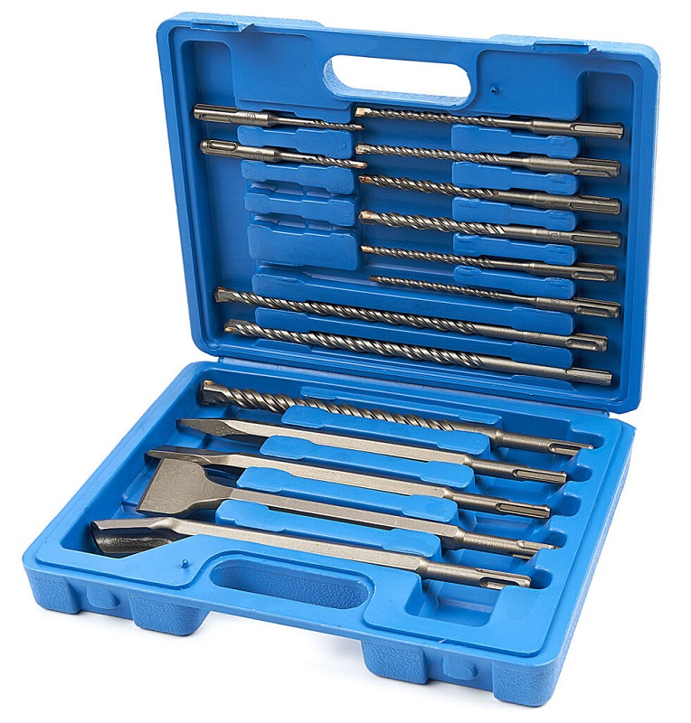 - Sada vrtáků a sekáčů do betonu SDS Plus, 15 dílů