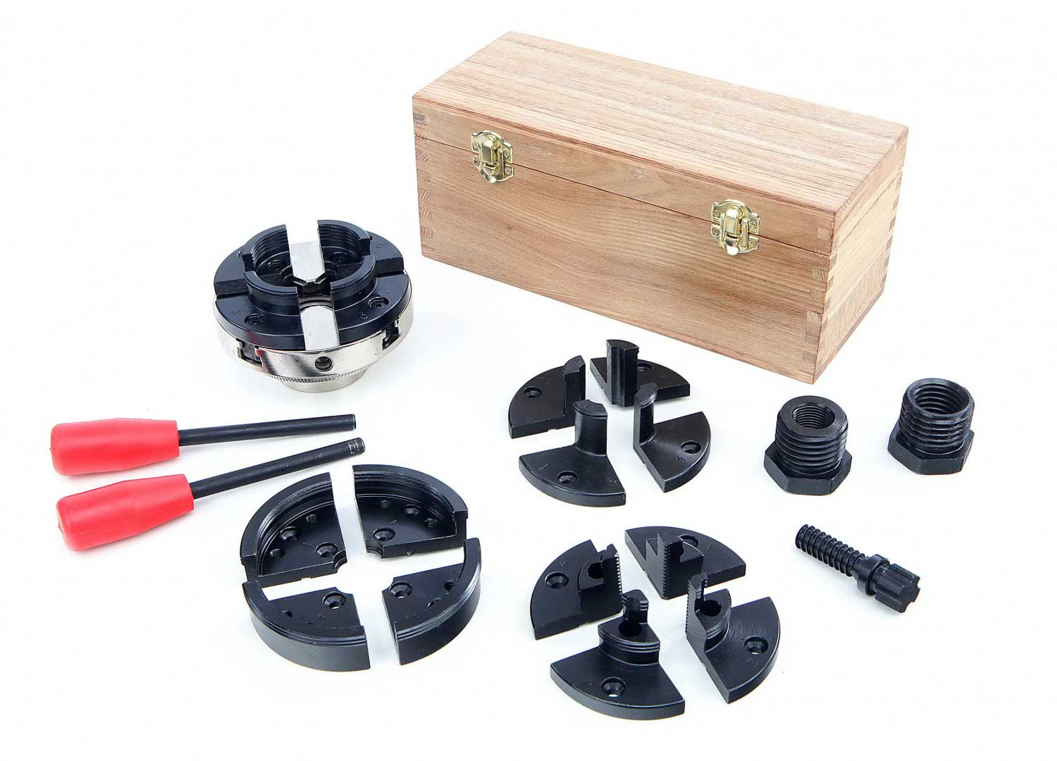 Samocentrovací sklíčidlo CK 4 - 4 N pro soustruh na dřevo, 100 mm, s adaptéry a příslušenstvím