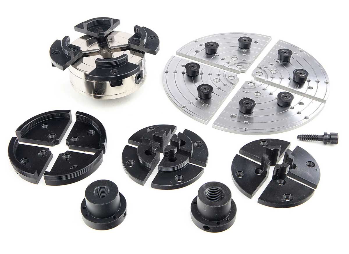 - Samocentrovací sklíčidlo CK 6-4 H pro soustruh na dřevo, 150 mm, s adaptéry a příslušenstvím