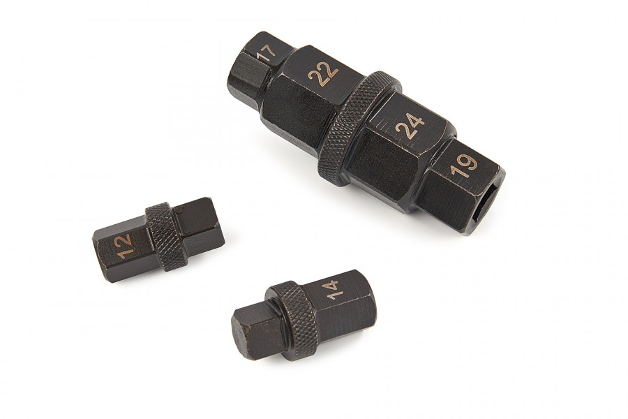 - Šestihranný přípravek na nápravy pro motocykly se 6 velikostmi 12-14-17-19-22-24 mm