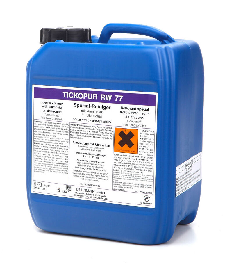 - TICKOPUR RW77, čistící kapalina pro ultrazvukové čističky, 5l