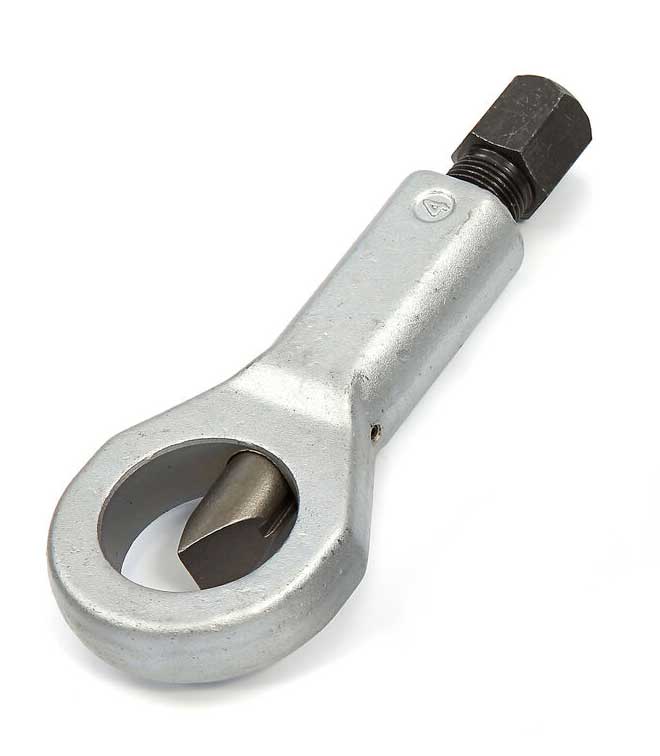 Zrezivělé a zatuhlé matice se často obtížně povolují. Se štípačem matic můžete povolit jakoukoli zarezlou matici během okamžiku. Velkou výhodou je, že matici rozštípnete, aniž by jste poškodili závit. Vyrobeno z tvrzeného železa. Nasunete štípač matic na matici a poté utahujete dokud matice nepraskne, následně povolíte a otočíte štípač na druhou stranu matice a uděláte to samé dokud se matice nerozpůlí. Štípač matic nepracuje na kalené oceli, například na vnitřních částech motoru.