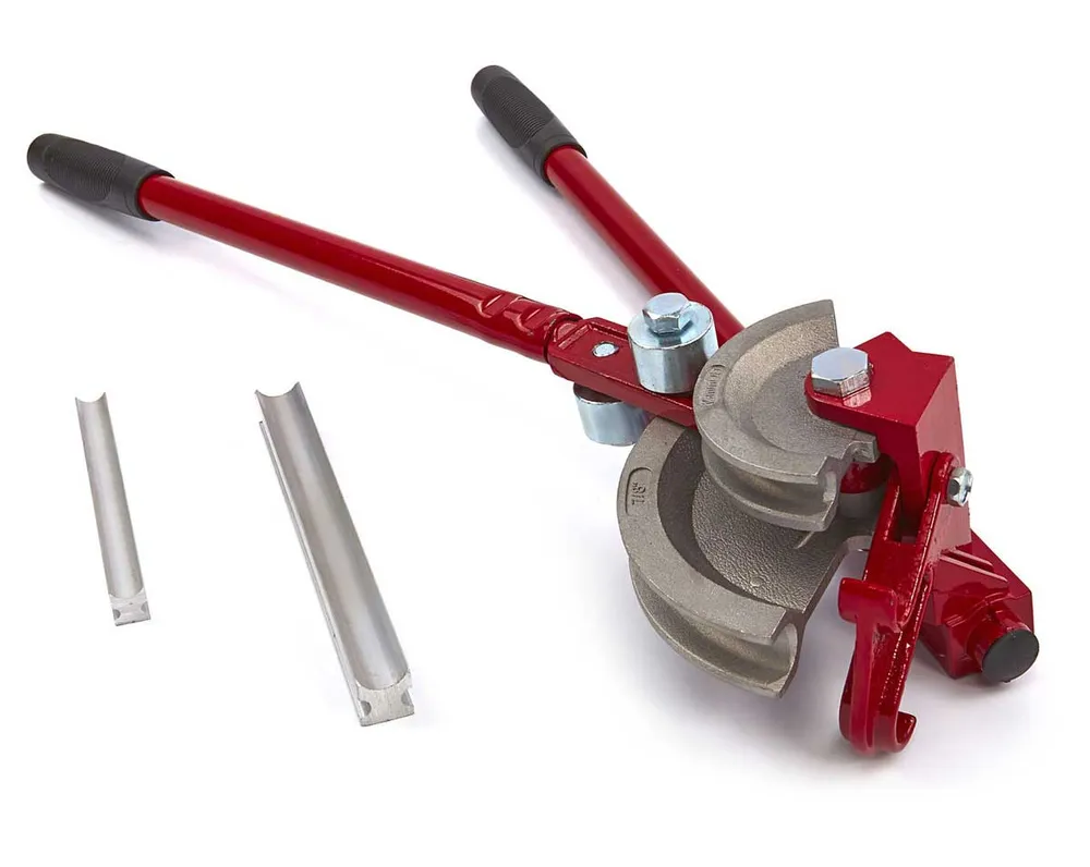 - Tato ohýbačka má robustní kulaté ocelové rukojeti a silné tvarovky z litého hliníku.