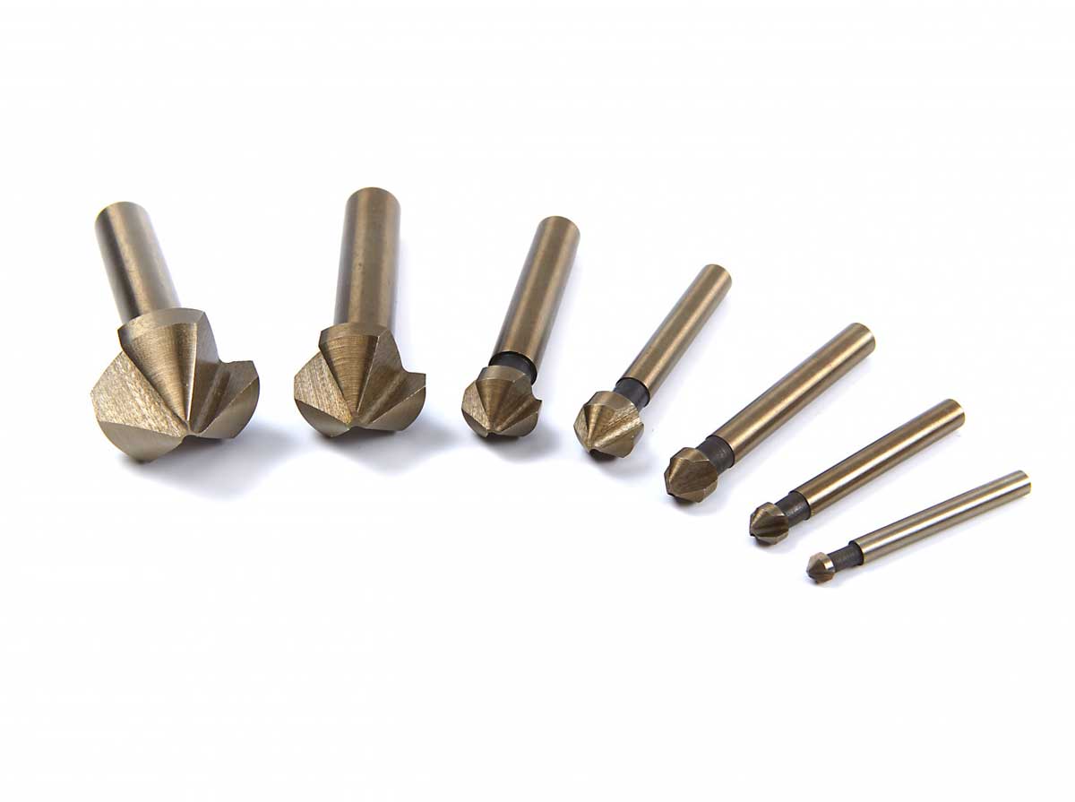 - Záhlubník HSS - 5% Co - kuželový tříbřitý 90°, s povlakem bronzu, průměr 6,3 mm
