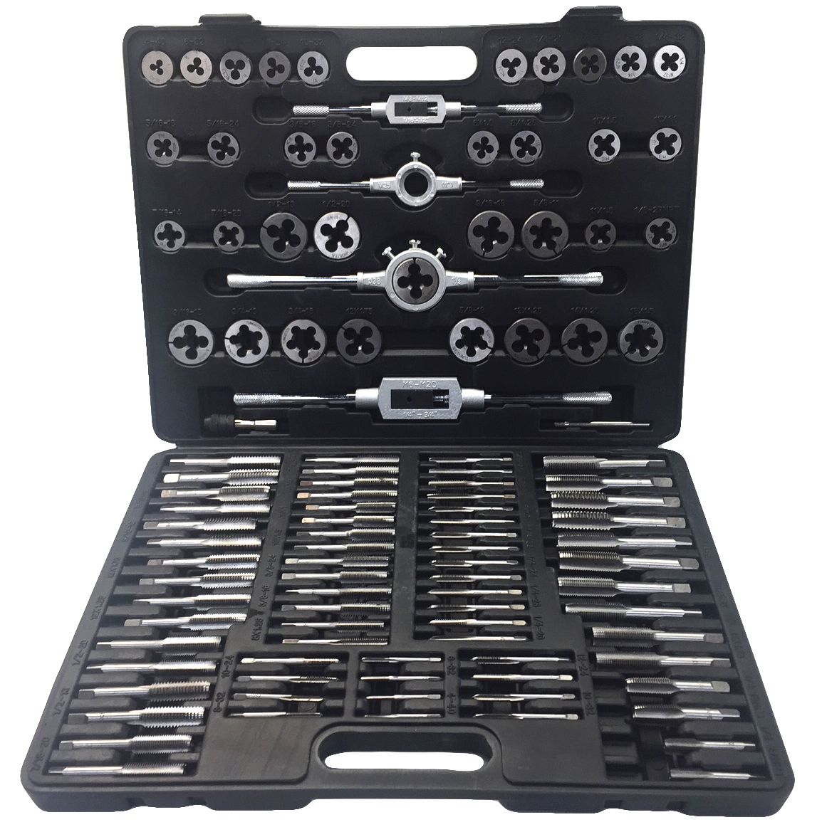 Velká sada závitníků a závitových kruhových čelistí „oček“