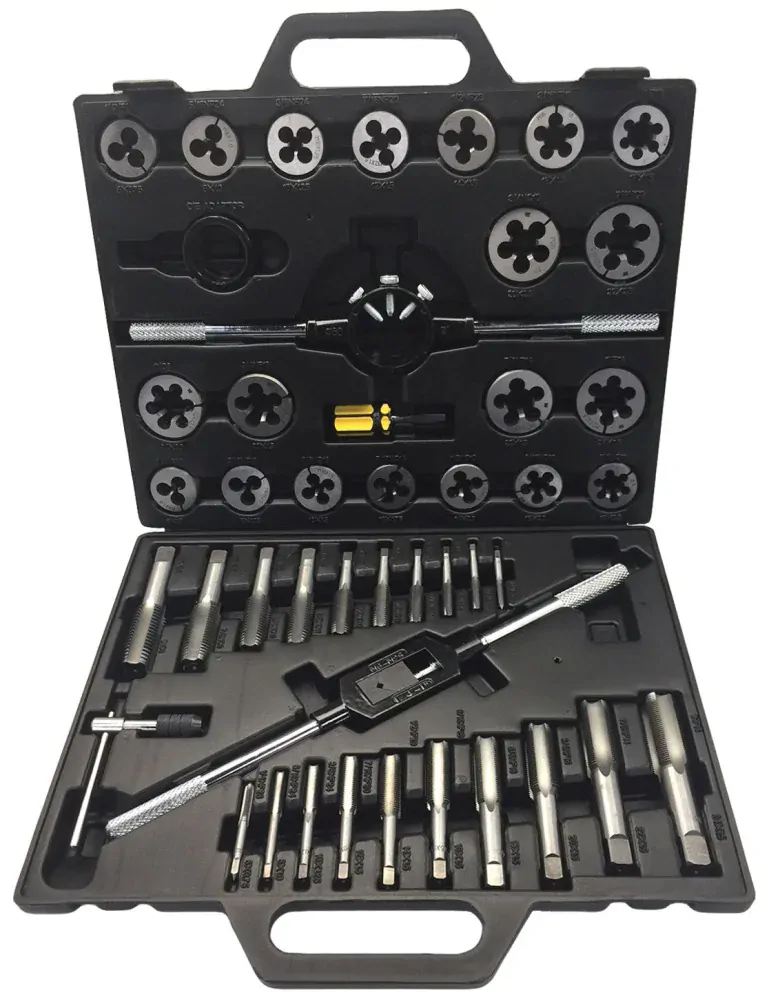 Sada závitníků a závitových kruhových čelistí „oček“